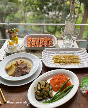 少量の水分で肉や野菜をとろ火で蒸し煮する調理法