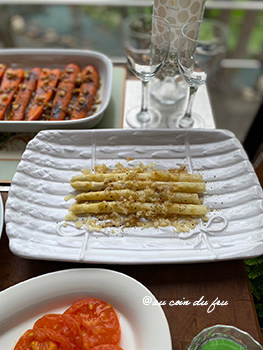 ホワイトアスパラガスは切り落とした部分を使ったソースでいただきます